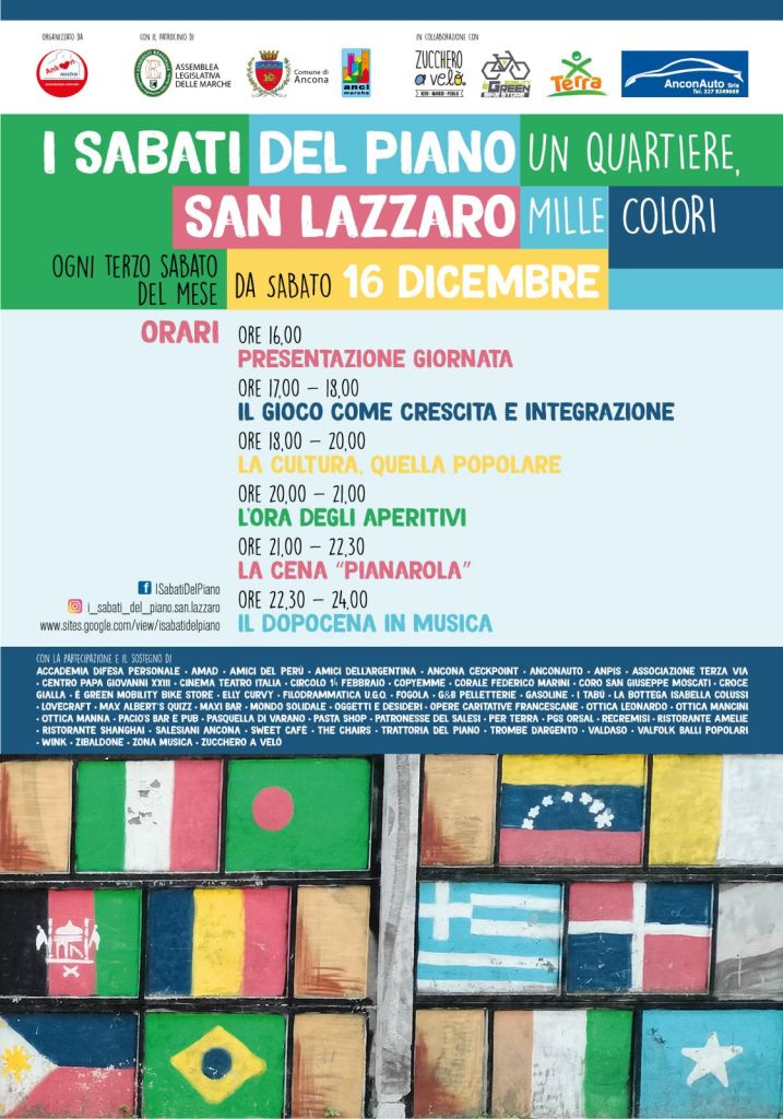 Il nostro grande evento per il primo semestre del 2024 “I Sabati del Piano San Lazzaro: un quartiere, mille colori” è stato annullato per mancanza di sostegno da parte del Comune di Ancona. Scopri l’evento nel sito web: https://sites.google.com/view/isabatidelpiano/home