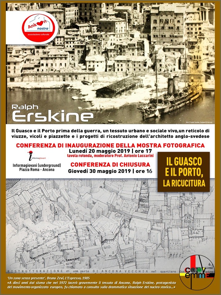 Il viaggio nel tempo, ideato e organizzato dall’Associazione culturale senza scopo di lucro Ankon nostra, parte da prima della guerra fino ai giorni nostri con focus due rioni popolari e storici della nostra città: il Guasco e il Porto, un tempo un tessuto urbano e sociale vivo, un reticolo di viuzze, vicoli e piazzette. I progetti di ricostruzione dell’architetto anglo-svedese Ralph Erskine avevano lo scopo di ricucire ciò che rimaneva per restituire vita al colle più antico di Ancona.