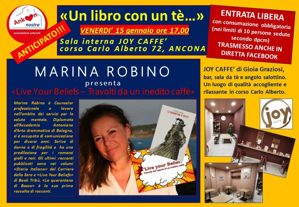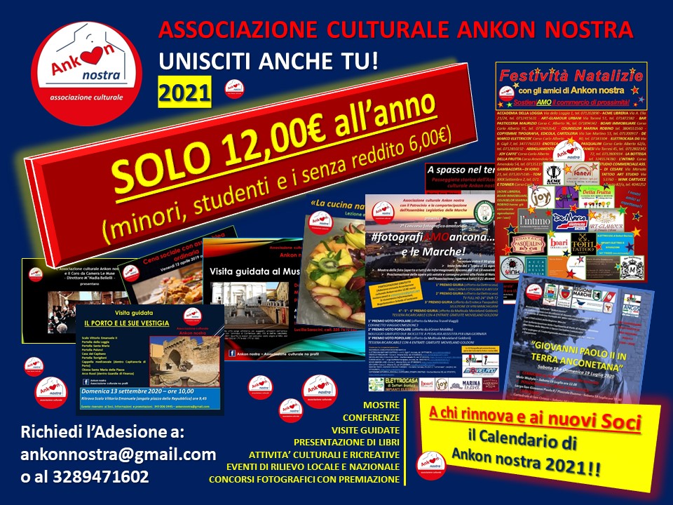 L’Associazione culturale senza scopo di lucro “Ankon nostra” perseguendo le proprie finalità e l’obiettivo comune di rendere (nel suo piccolo) la cultura accessibile a tutti, nell’ottica di affiancare le attività commerciali nel rilancio post Covid, presenta l’iniziativa “UN LIBRO E UN CAFFE’”. Crediamo che sia fondamentale coinvolgere in questo nostro impegno una delle zone simbolo della nostra città, pertanto, come nell’anno della nascita dell’associazione, l’iniziativa prenderà il via nel quartiere di Piano San Lazzaro. I volumi messi a disposizione comprendono pubblicazioni dei più svariati argomenti in diverse lingue ed edizioni, dedicate anche ai bambini. L’attività commerciale “Joy Caffè”, in Corso Carlo Alberto 72, per sui ringraziamo la titolare Gioia Graziosi, offre la sua disponibilità e si impegna a mettere a disposizione del progetto uno spazio munito di scaffale o mensola per libreria, mantenendo tale spazio efficiente, pulito, ordinato e accessibile, sicuro sotto il profilo sanitario, dedicato a tutta la clientela, senza distinzioni, che vorrà usufruire dell’occasione per rendere ricreativo il proprio tempo libero, in un ambiente confortevole con i servizi di caffetteria e sala da tè con sedute e tavoli. L’Associazione si impegna a riempire lo spazio con libri e riviste di diversa tipologia e di renderli fruibili al pubblico, con preghiera di restituzione per metterlo a disposizione a quante persone vogliamo usufruire dei vari testi. Lo spazio espositivo, sarà riassortito mensilmente. La valorizzazione di tale progetto è tesa alla promozione dei principi sociali, solidali e culturali dell’Associazione, oltre che come azione di supporto fattivo per il rilancio delle attività commerciali e di ristorazione, duramente colpite dalla pandemia. Chi desidera può anche conferire i propri libri in donazione portandoli direttamente in loco.