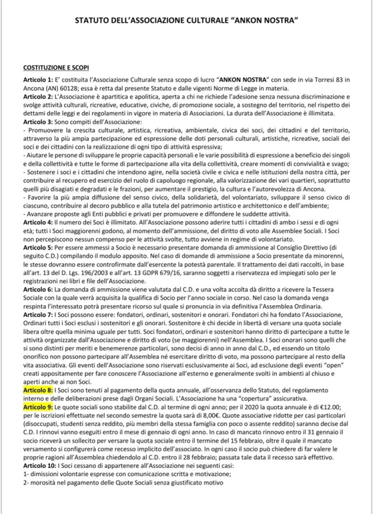 – Indirizzo di posta elettronica dell’associazione: ankonnostra@gmail.com
